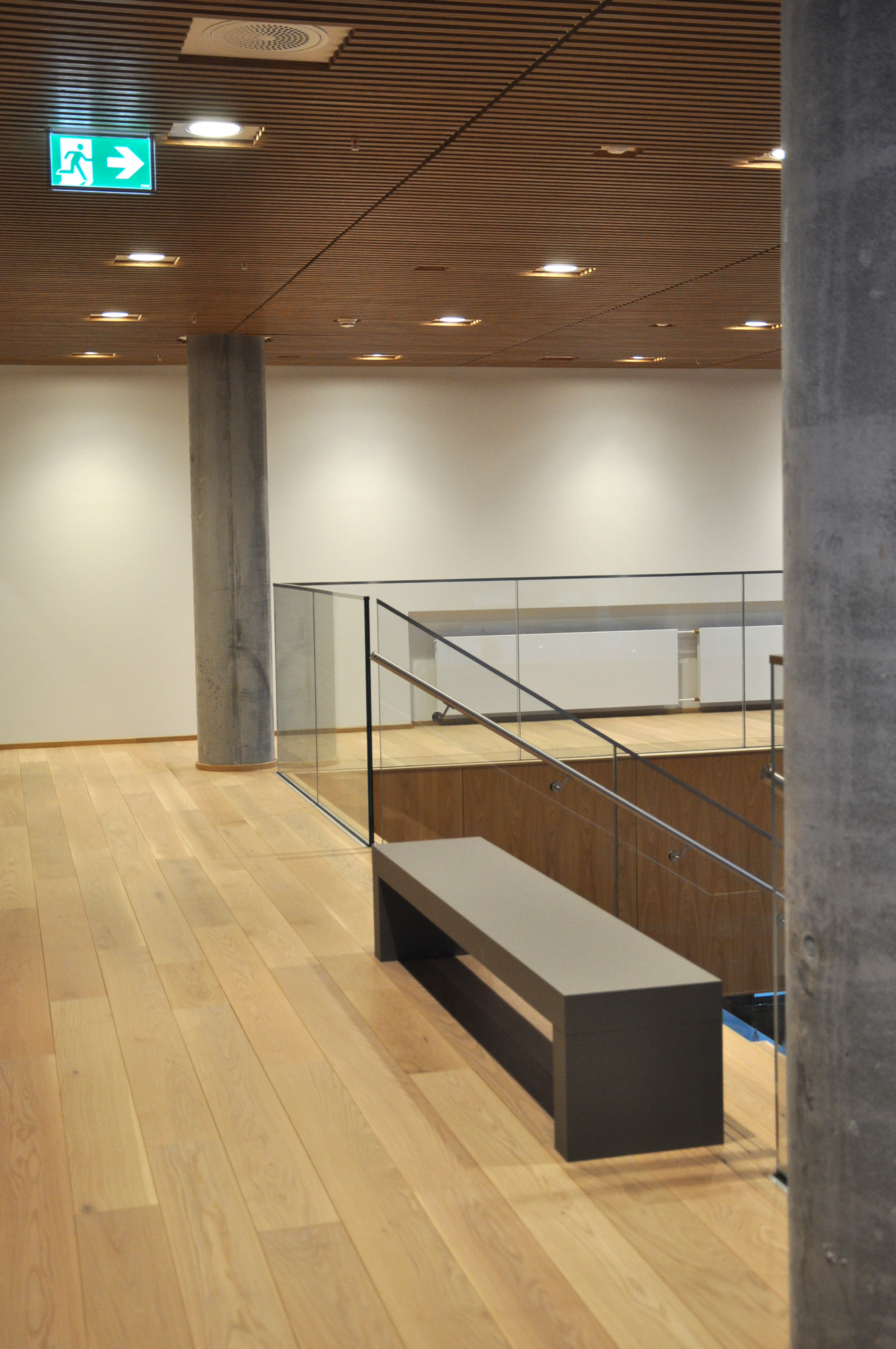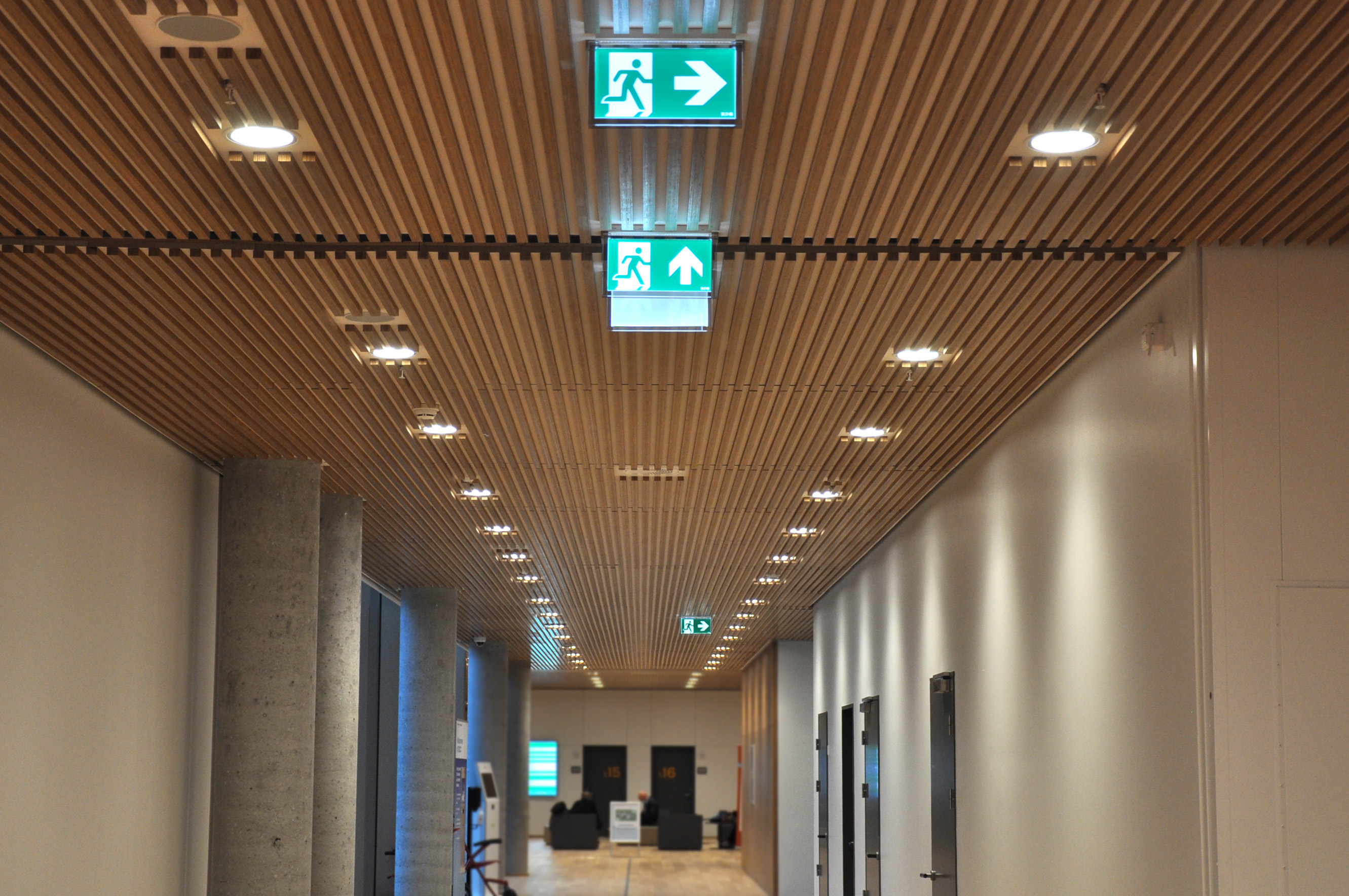For at understrege den moderne, lette helhed i arkitekturen, er flugtvejsskiltet Crystalway anvendt i alle indendørs fællesarealer. Skiltet udmærker sig ved at have en transparent ramme i glasklart akryl.